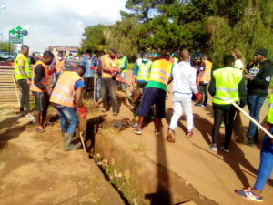 Une cinquantaine de jeunes conduits par le rappeur BEN GENERAL ont curé des caniveaux et nettoyé quelques espaces de la ville de Bafoussam. Une belle matinée du Dimanche 3 Octobre 2021.