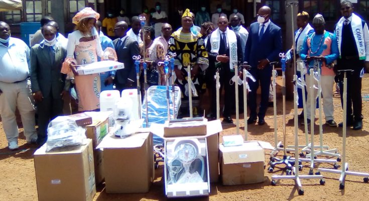 Après le commissariat central, le cap est mis sur l’hôpital Ad – Lucem de Bandjoun où du matériel médical a été remis à cette formation sanitaire et ses annexes. Il est constitué d’appareils et de consommables à savoir un microscope biologique, 6 pèses personne pour adulte, 6 pèses bébé électronique, 5 plateaux rectangulaires moyens en acier inoxydables, 5 potences, 10 potences de fabrication locale, 6 Doppler Fœtal, une boîte d’accouchement complète de 23 éléments, 6 appareils de glycémie (Glucomètre, boîte de 50 bandelettes, 6 boîtes de 100 lancetts autopiquers), 1 civière, 6 bidons de 20 l d’Alcool, 25 gants de soins de paquet de 100. « Après réception de ce don, c’est un sentiment de joie pour nous et nous disons grandement merci au CODEMI d’avoir pensé à l’hôpital AD – LUCEM de Bandjoun. Nous promettons que ce don vont servir à l’amélioration la prise en charge de nos différents malades, ici à l’hôpital et dans nos différents annexes ». Satisfécit du Docteur Carmine Jessica Nguebang, médecin chef de l’hôpital Ad – Lucem de Bandjoun.