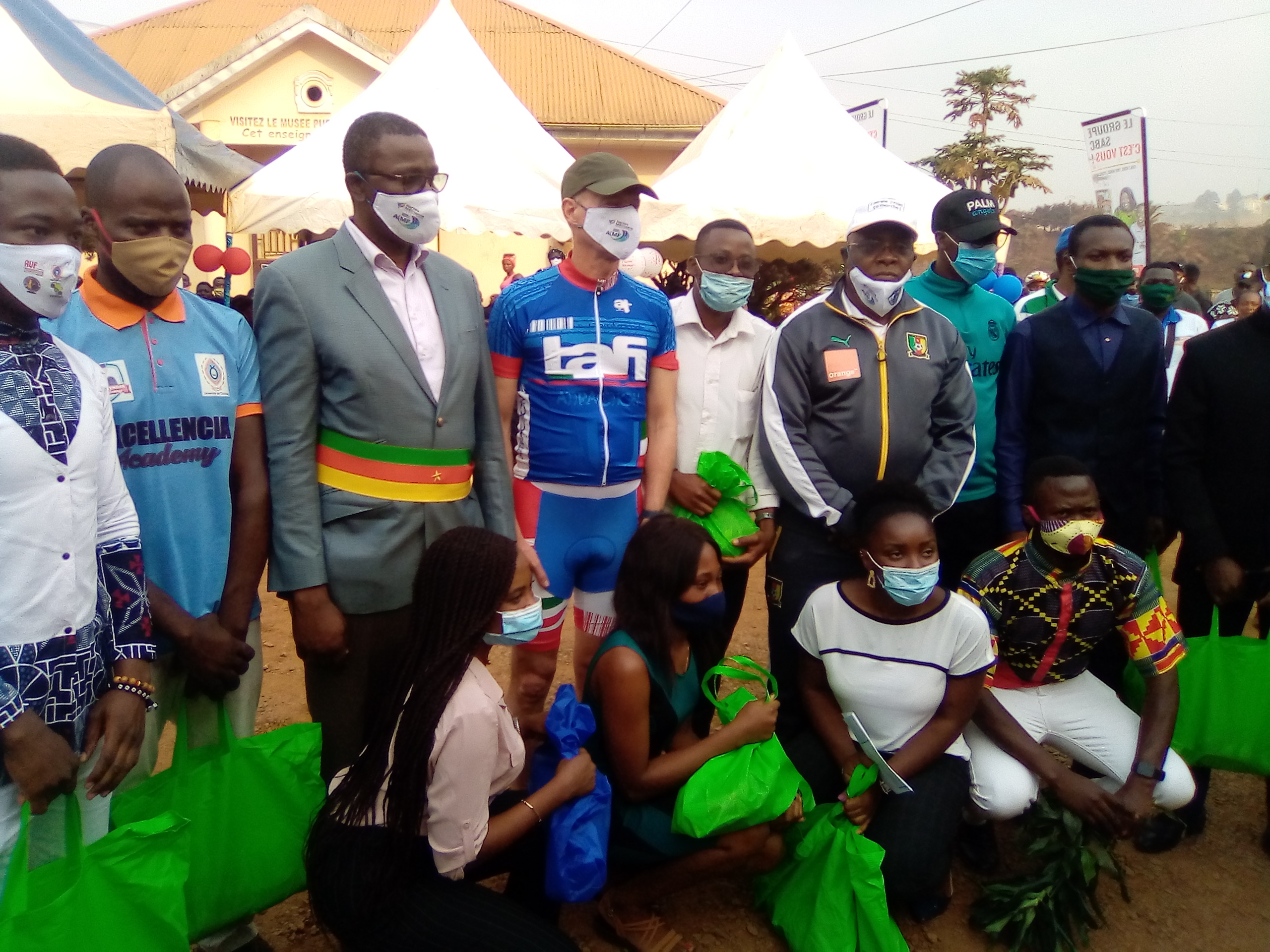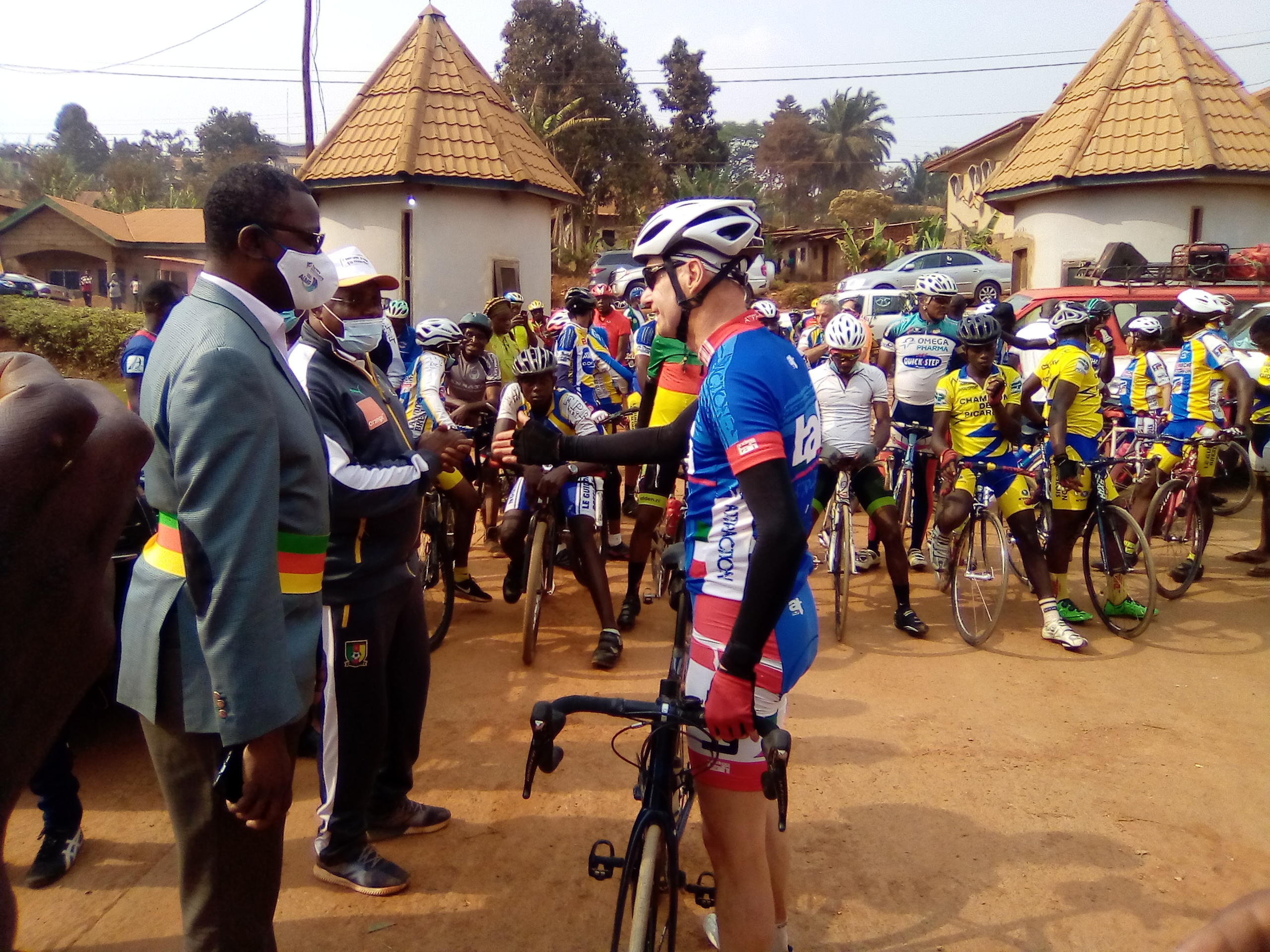 Dschang était le point de chute de l’étape d’une course lancée à Mbouda avec escale à Bafou. La 2ème d’une épreuve sportive et touristique à vélo, effectuée à la veille entre Bafoussam et Foumban. L’ambassadeur de France au Cameroun, Christophe Guilhou et sa suite composée des chefs de grandes entreprises camerounaises et de quelques anciens cyclistes sont accueillis à l’entrée du musée des civilisations par le préfet de la Menoua Golive Ntua et le maire Jacquis Gabriel Kemleu Tchabgou.