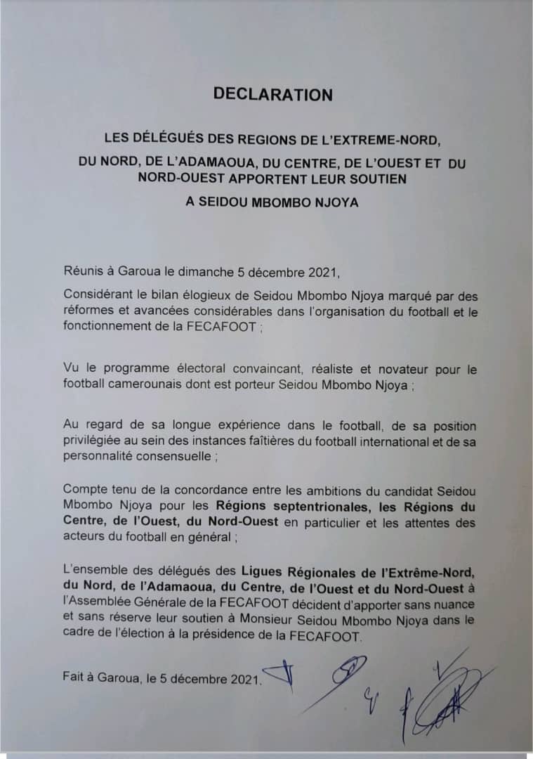 SPORTElection FECAFOOT: Le soutien des régions à Seïdou Mbombo Njoya 5 décembre 2021 - by admin - Leave a Comment C’est depuis le Nord que le candidat Seïdou Mbombo Njoya a reçu le soutien de plusieurs régions