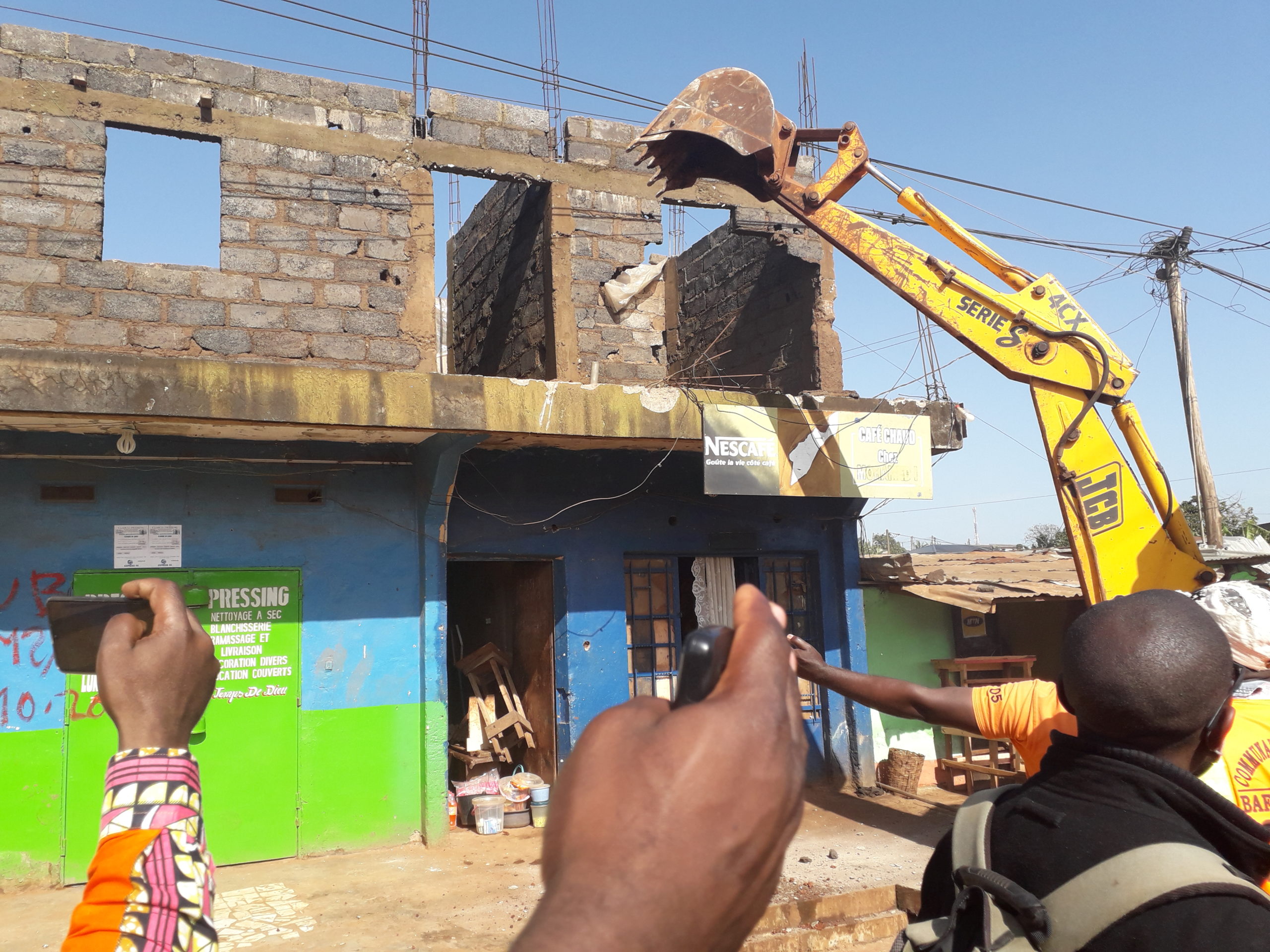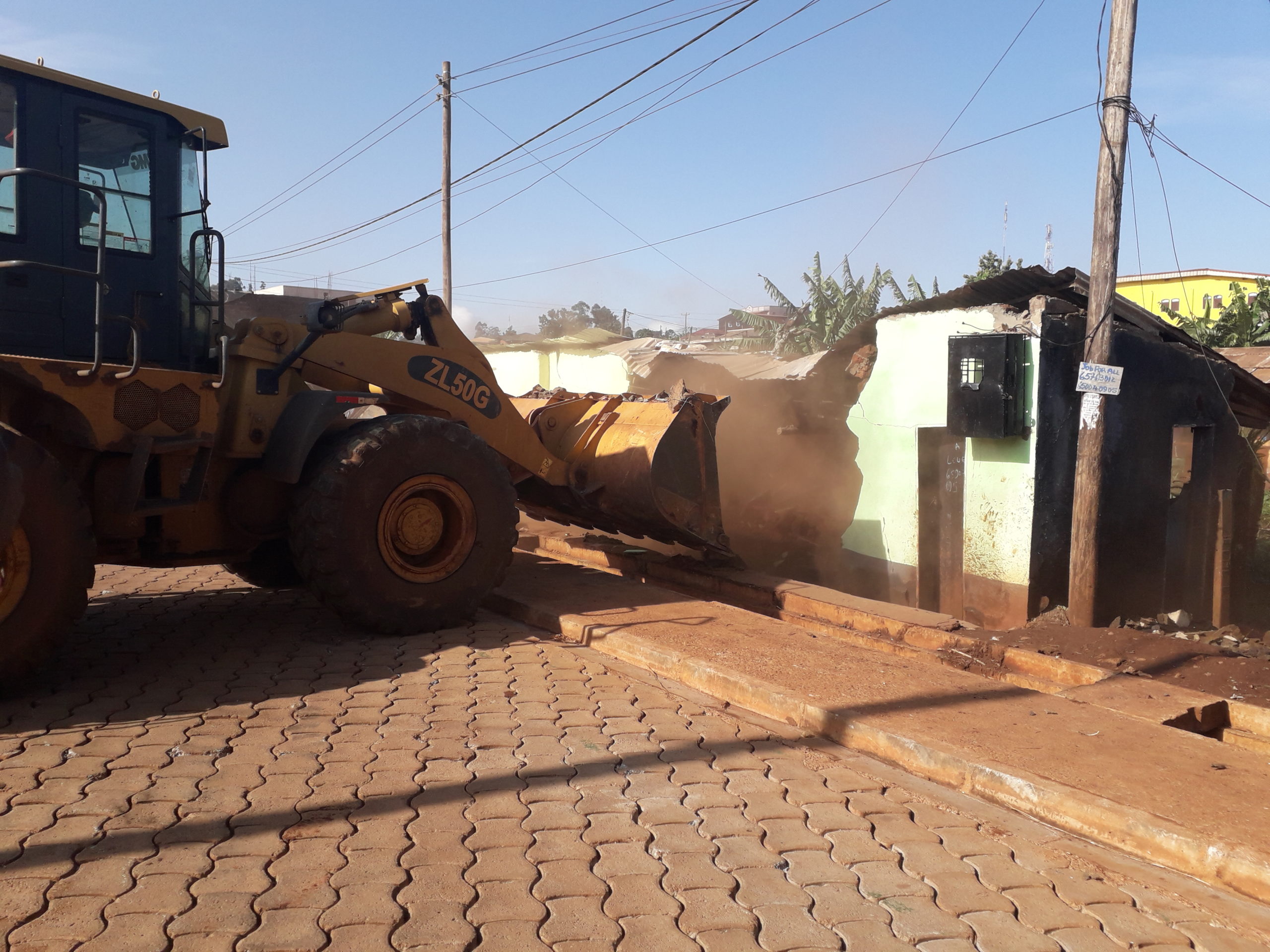 Le long du boulevard kouogouog à partir du lieu dit Camp sable, a connu une effervescence inhabituelle ce matin. Une ambiance alimentée de pleurs, de supplications ,de plaintes et de bruits d’engins bousculant sur leur passage des habitations installées sur les drains. D’une voix étranglée par des sanglots, des larmes ruisselant sur ses joues, une dame n’a pu retenir sa colère « Laissez, laissez, attendez, je vais détruire moi – même »,clame – t- elle. Trop tard ! La pelle chargeuse avait été déjà actionnée et les murs de sa maison s’écroulaient l’un après l’autre. Tour à tour, plus d’une dizaine d’habitations vont passer à la trappe.