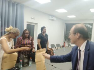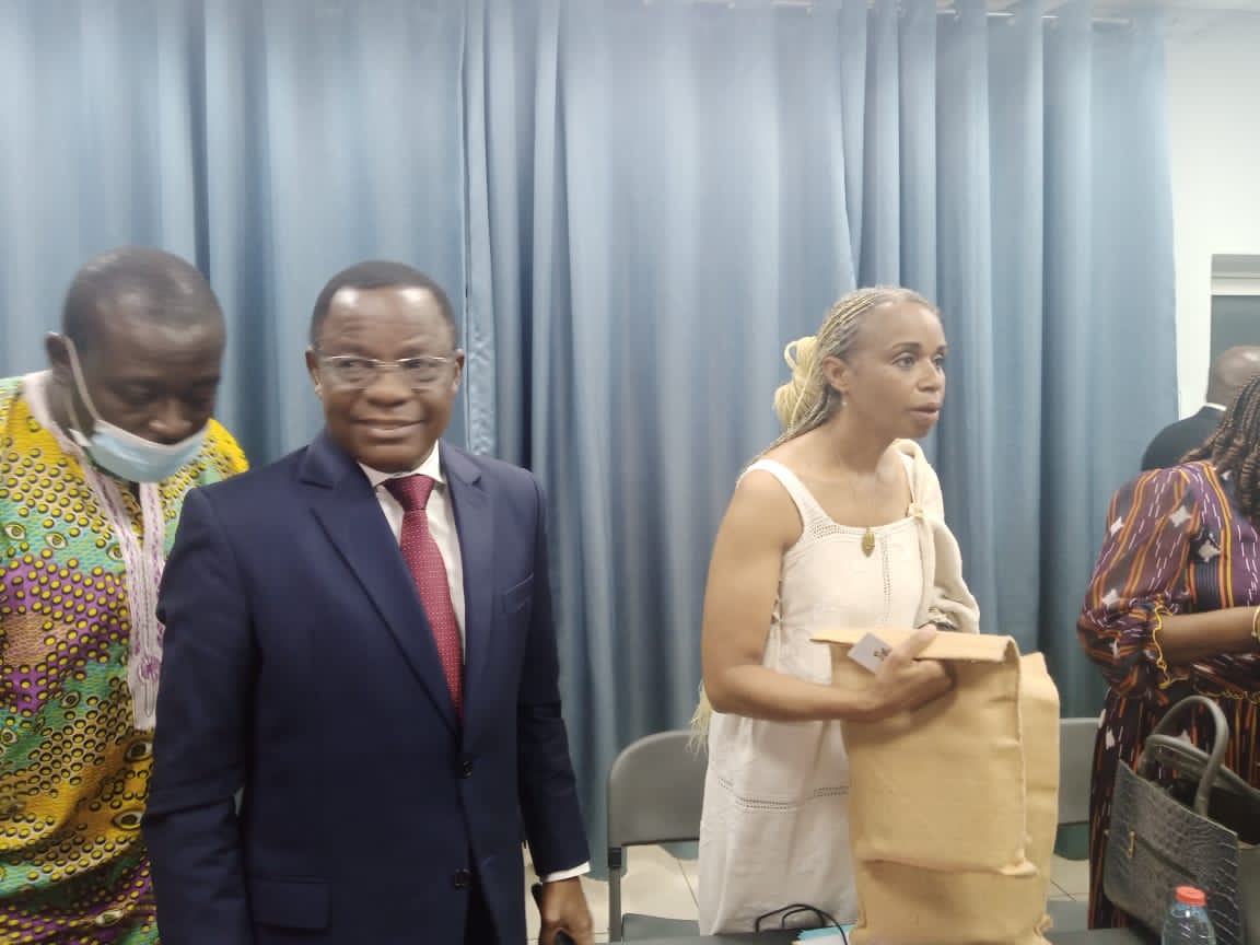 L’Honorable Patricia Tomaïno Ndam Njoya est arrivée en pure africaine, les mains bien chargées de cadeaux pour souvenir . La Présidente de l’Association des Femmes Camerounaises dans le Café (AFECC) et Président du Conseil d’Administration de la Coopérative Agro industrielle du Noun(COOPAGRO) a offert des sachets de café à leurs hôtes. Produits de la gamme de ses productions, dont l’une ( le Café Manushi) a obtenu un prix mondial, il y a qualques années. Au nom de la Plate forme de l’opposition, elle leur a remis une copie de la proposition de la Réforme Participative et Consensuelle du Système Électoral.