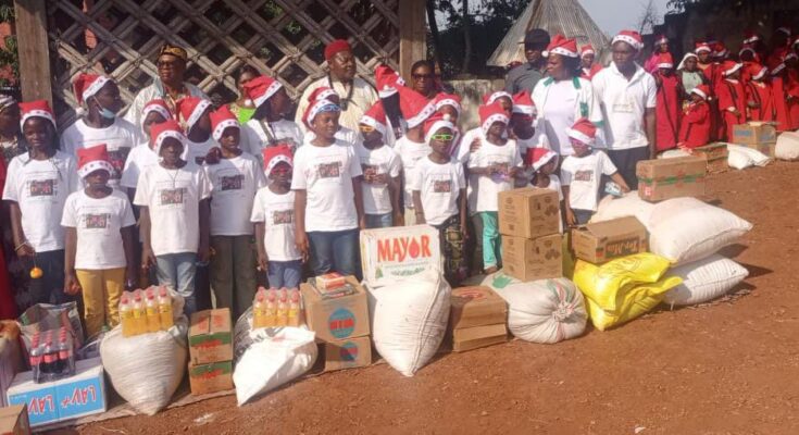 Le 23 Décembre 2025, l’esplanade de la chefferie de Moutcha a abrité le 12ème arbre de Noël, pour ceux des orphelinats sus cités et des élèves déplacés internes des régions du Nord Ouest et Sud Ouest, installés dans le département du Koung Khi. 12 ans sans discontinuer que SM Paul Tchatchouang l’offre à « ses » enfants.