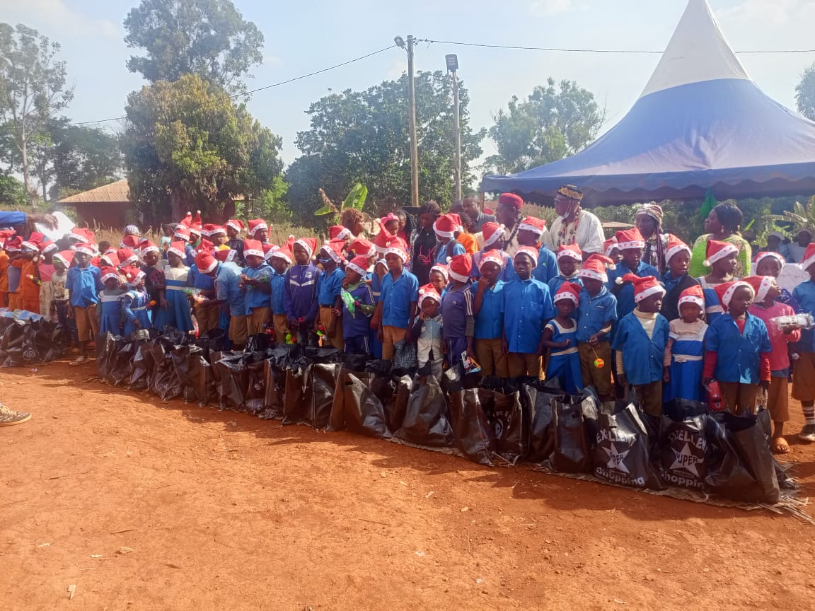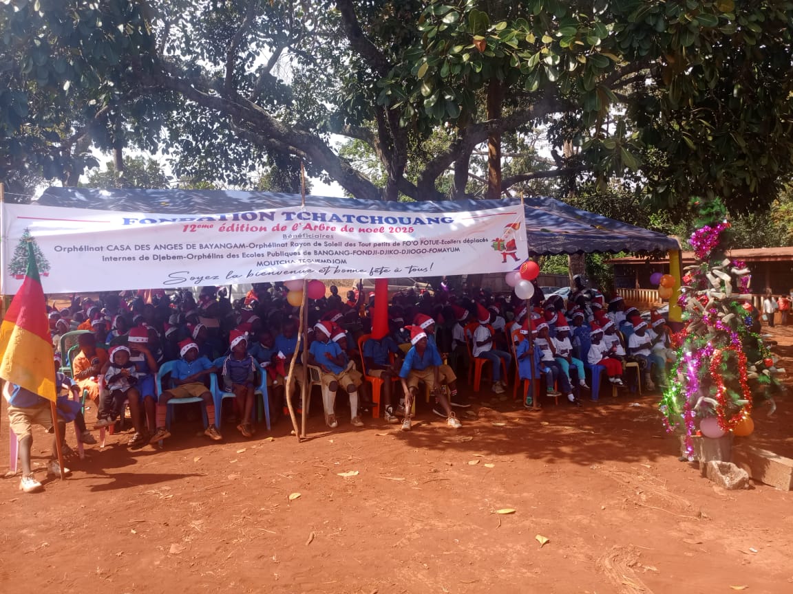 Le 23 Décembre 2025, l’esplanade de la chefferie de Moutcha a abrité le 12ème arbre de Noël, pour ceux des orphelinats sus cités et des élèves déplacés internes des régions du Nord Ouest et Sud Ouest, installés dans le département du Koung Khi. 12 ans sans discontinuer que SM Paul Tchatchouang l’offre à « ses » enfants.