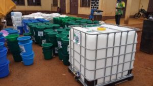 En vue de renforcer le personnel sanitaire en cette période de veille, 15 étudiants médecins finissants et 15 élèves infirmiers, tous volontaires ont été recrutés par un comité technique coordonné par Dr Jonas Kouamou par ailleurs maire de la commune de Bangangté. Pour la phase de sensibilisation des populations, le RIPREM a confectionné des supports de communication : Flyers, Affichettes, Banderoles, Casquettes, Tee – Shirt, véhicules sonorisés devant parcourir tous les villages et des spots aussi en langues locales pour diffusion dans les médias communautaires. Une citerne de 1000 litres d’eau potable sera placée dans chacun des villages. Ce dispositif y sera maintenu après le passage du COVID – 19, pour renforcer la qualité de l’approvisionnement en eau. A précisé la représentante de l’Association donatrice. Une initiative encouragée par François Etapa, préfet du Ndé qui dans la foulée a réitéré la nécessité du respect des mesures gouvernementales de riposte et de lutte contre le Coronavirus. Selon ses promoteurs le RIPREM est « un projet innovant dans sa conception et sa mise en œuvre, durable et inclusif et conçu suivant les standards d’assistance Onusiens ». Ses activités sont coordonnées par Maveun Nap Ngoh Tshibanda Marie Louise, encadrées et parrainées par Maveun Menchiagrup Célestine Ketcha Courtès qui entend distribuer 50 000 Cache – Nez dans les prochains jours.