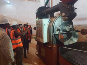 C’est une chaîne complète de transformation du café moulu, dotée d’un système électronique. Elle est composée de : un torréfacteur ; un moulin broyeur ; une ensacheuse ; une conditionneuse automatique fabriquée et installée par JOPER, une entreprise portugaise. Afin de pallier les coupures de l’énergie Eneo, elle dispose d’un groupe électrogène industriel d’une puissance de 400 KVA et d’un compresseur de 11kw.