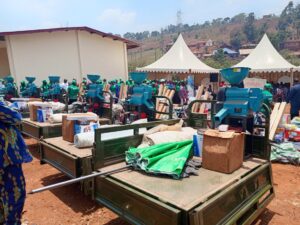 Dans la foulée, le MINADER a remis du matériel agricole aux groupes de producteurs et communes ; dont certains constitueront des ateliers de traitement post récolte de café.