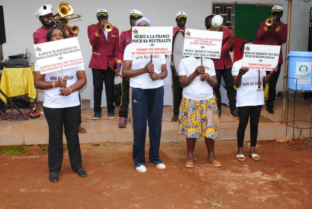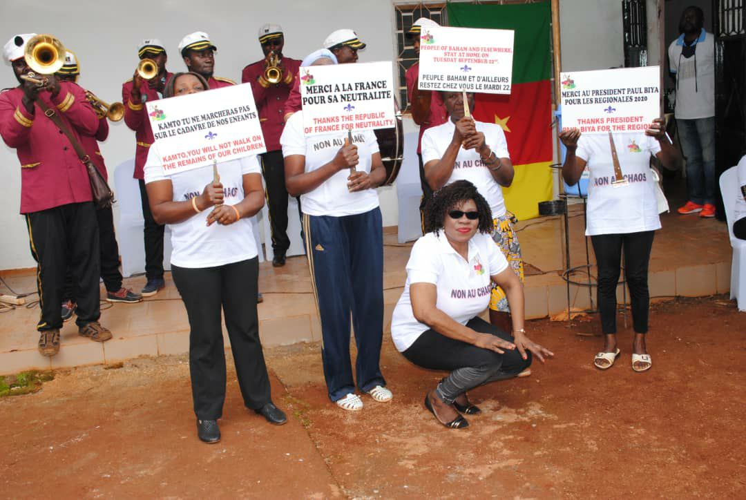 Elles sont femmes leaders et membres de l’Association Flamme d’Amour de Justice et Paix, fondée et présidée par l’honorable Dr Me Fostine Fotso. On y trouve aussi quelques hommes. Leur traditionnelle rencontre s’est tenue le 20 Septembre 2020 dans un contexte alimenté par une actualité intense autour de la marche du 22 Septembre 2020, programmée par le Président National du Mouvement pour la Renaissance du Cameroun(MRC), le Pr Maurice Kamto. Sur les pancartes fièrement portées, on pouvait lire entre autres messages : Non au chaos, Merci à la France pour sa neutralité, Kamto tu ne marcheras pas sur le cadavre de nos enfants. Merci au Président Paul Biya pour les régionales.