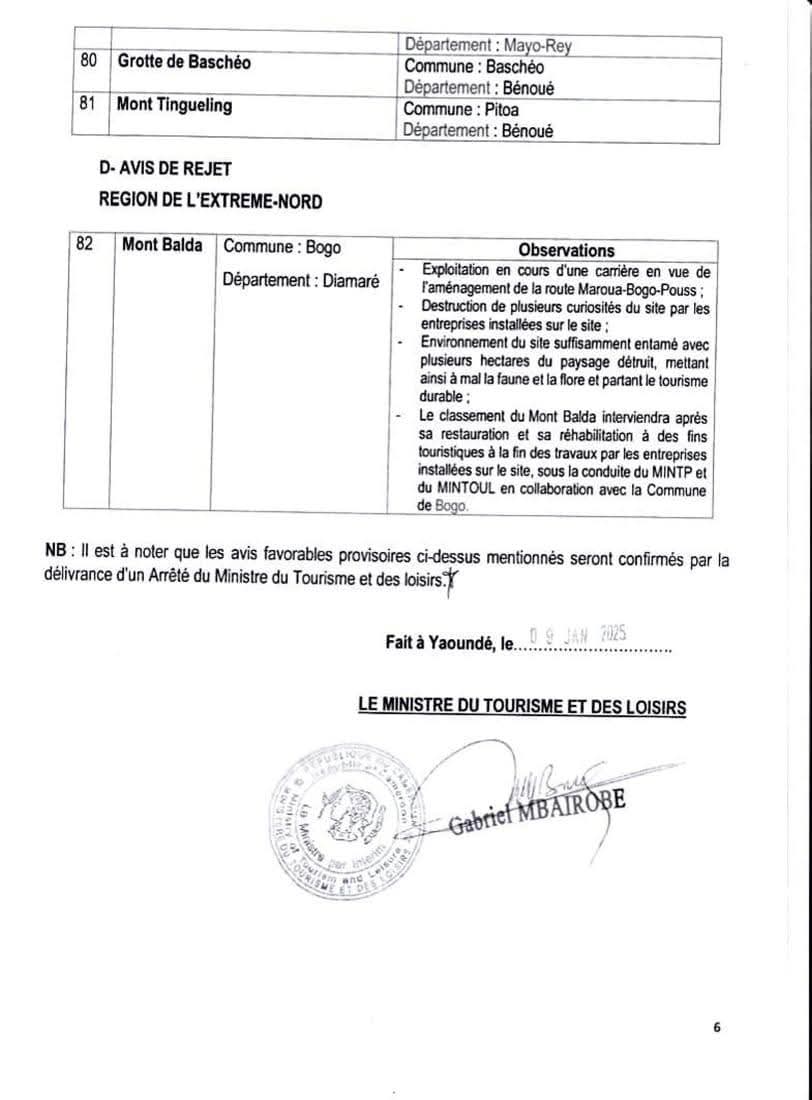 La région de l’Adamaoua, à titre d’exemple a positionné 24 sites touristiques dans ce classement 2025 de la CC-ETL. Cette publication officielle doit être perçue comme une invite aux communes de l’Ouest, au conseil régional de l’Ouest et aux Services Déconcentrés impliqués dans le secteur du tourisme et des loisirs, à la révision de leurs approches.