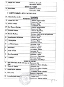 Ces sites touristiques ont été classés selon l’intérêt local (communal), régional et national. Dans une région de l’Ouest, où fourmillent les sites touristiques et autour desquels travaillent des acteurs étatiques et non gouvernementaux, seul le Mont Mbapit du ressort de la commune de Foumbot, a pu être retenu. On est tenté de questionner le rôle et l’efficacité de l’Office Régional du Tourisme de l’Ouest, auprès duquel, certaines entités mieux loties dans ce classement, ont pourtant été pour renforcer leurs capacités. Sur ce coup, l’élève semble avoir dépassé le maître. Soit!