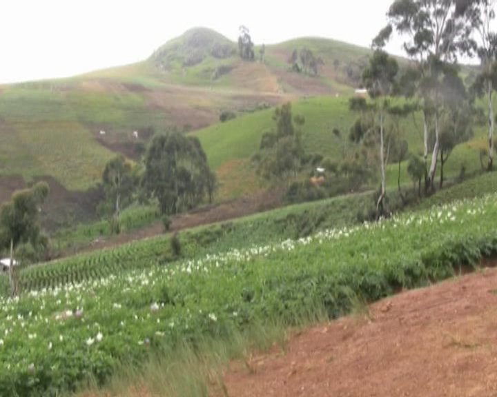 Que l’on soit sur le versant à Bamelo et Zavion dans la commune de Babadjou, à Nzindong dans la commune de Batcham ou sur les flancs de Balatchi dans la commune de Mbouda, on est subjugué par un paysage pittoresque meublé d’une part d’élévations sous forme de vagues disposées en escalier et d’autre part des falaises escarpées. Sur ces pentes parfois abruptes jusqu’à leur sommet, des vastes champs de pommes de terre alors que sur l’espace qui s’étend depuis leur pied, on peut admirer avec quelques soucis la culture maraîchère qui y est intensément pratiquée. Amertume, par ce qu’on reste tout de même pantois devant l’étendue de raphiales qui ont cédé place à la culture du chou et autres feuilles vertes. Toutes ces parcelles exploitées sont traversées par des tuyaux d’irrigation qui se ravitaillent à partir des points de captage.