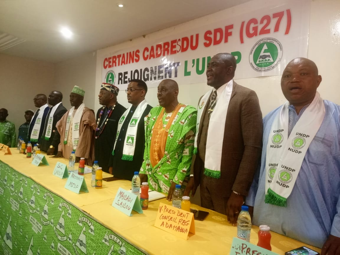 Entre autres cadres du G27 qui ont officialisé leurs adhésions à l’UNDP, Raoult Tchopnou, ancien sénateur SDF du Hauts Nkam et ancien départemental ; Florent Tchangop, ancien régional SDF pour l’ouest ; Pierre Sukam, ancien adjoint au maire de Bafoussam 2ème ; Bernard Tchanou, ancien maire de Bafoussam 3ème, Fam Arouna du Noun ; Metiedjeu Delphine, ancienne sénatrice des Hauts Plateaux ;Sa’a Defo des Hauts plateaux. Dernière cette locomotive, ce sont plus de 200 nouvelles recrues des différents départements qui ont été accueillies, le 22 Octobre 2025, au cours d’une cérémonie présidée par le sénateur Flambeau Ngayap, Secrétaire Général du parti et représentant le Président National.