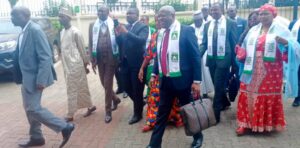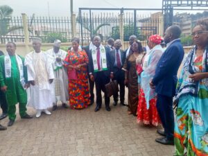 Il était 9h quand la délégation de l’Union Nationale pour la Démocratie et le Progrès (UNDP), conduite par le Secrétariat Général du parti a franchi le portail du siège central de Elecam. Flambeau Ngayap et ses camarades du Comité Central dont les élus locaux, sont reçus au perron par Abdoulkarimou, le Directeur Général Adjoint de l’institution.